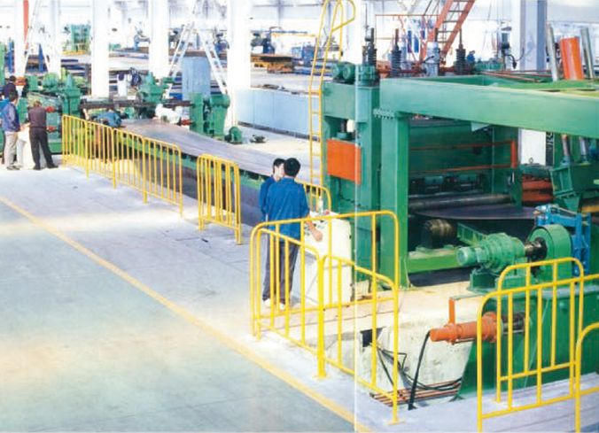 该生產线为中板厚开卷校平生產线的加剧机器。为了让满足化工厂不息开发的它的厚度挺大、板幅更宽的钢卷开平需本厂家特意设计的、加工制造出该编企业产品。由放料小车、开卷机、引头器、夹送及粗校、过度台、对中器、主校平机、测长器、尾料夹送、数控剪板机、气力输送机给料、落料整料器、电子控制程序程序与液压装置手动程序等组合成。