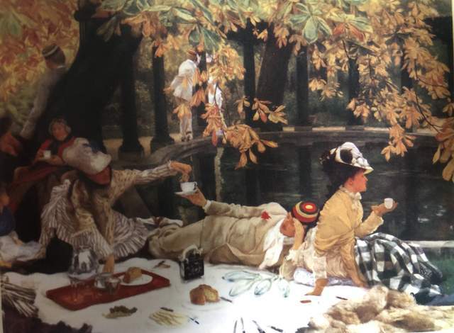 詹姆斯·迪索1876年绘制的《野餐》,展现了画家本人住在伦敦圣约翰伍德区时,在家里后院野餐的情景。