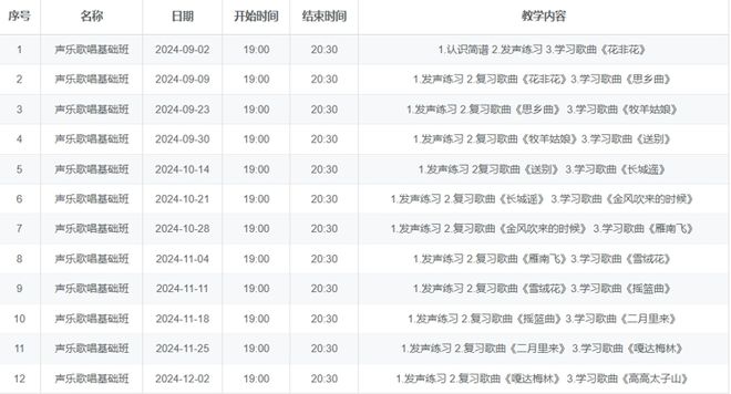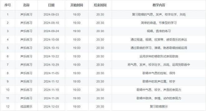 通过对发声、气息、咬字吐字、共鸣四大要素,进行声乐课的科学发声指导,并教授民族、中外艺术歌曲等不同风格的歌曲,进一步加强发声演唱中的科学方法运用及歌曲风格性的处理。