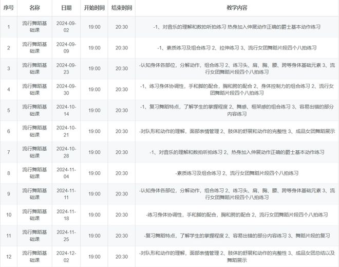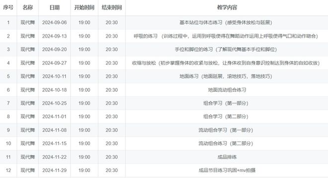 爵士舞蹈班的主要课程内容包括:拉伸热身以预防运动损伤;基本功讲解与练习,打好动作基础;分解动作讲解,逐步掌握细节;练习动作连贯性,提升整体流畅度;舞蹈动作结合音乐练习,增强表现力;最后进行成品舞拍摄,通过视频回顾与改进。
