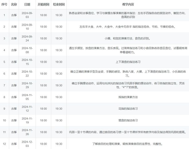 古筝课程培训包括基础教学、技能训练、曲目演奏等方面。学生将学习到古筝的基本结构、演奏技巧、乐谱阅读等基本知识,同时也会学习到一些常见的古筝曲。丰富业余生活及兴趣爱好,通过乐器演奏接触与学习音乐,得到关于手部机能的初步有序的训练,锻炼身体协调性,培养艺术美感和气质。教学点配备专业乐器提供学员上课,无需自备乐器。