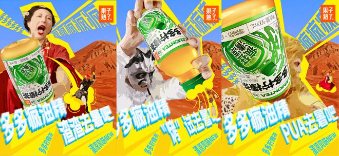 在传播形式上,多多柠檬茶采用了二创TVC、话题海报、表情包、品牌联动等多种方式进行品牌声量的再扩散,有效地与年轻人“玩在一起”,并激发他们的创作热情,进一步加深与品牌的互动和忠诚度。
