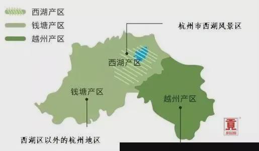 原产地保护正式确定浙江省内18个区县市所产扁形绿茶可称为龙井茶,分为三个产区:西湖产区、钱塘产区、越州产区,只有产于西湖产区的才能称为西湖龙井茶。