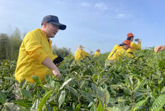 每一次弯腰,每一次抬手,都是对自然的敬畏和对茶农辛勤工作的体验。采茶过程中,大家的心情如同这春日的暖阳,明媚而满足。(胡光华)
