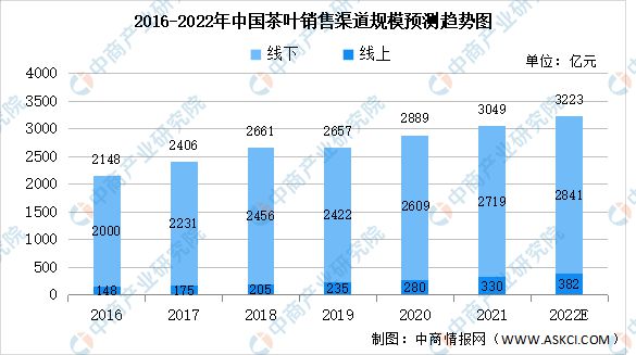 过去,由经销商营运的门店主导的线下销售渠道是中国茶叶产品的主要销售渠道。中国茶叶市场线亿元,复合年增长率为6.3%,预计2022年将达到3442亿元。近年来,茶公司开设自营直营门店的意愿高涨,尤其针对其高端茶品牌。此外,随着中国电子商务的飞速发展,线上直营渠道崭露头角并在中国茶公司间愈来愈受欢迎。中国茶叶市场线.4%,预计2022年中国茶叶市场线.新式茶饮门店