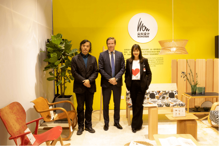 从左至右:上海联创设计集团股份有限公司董事长&总裁/尖叫设计品牌创始人薄曦、芬兰驻沪总领事何朗明、设计上海展会总监谭卓