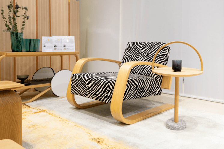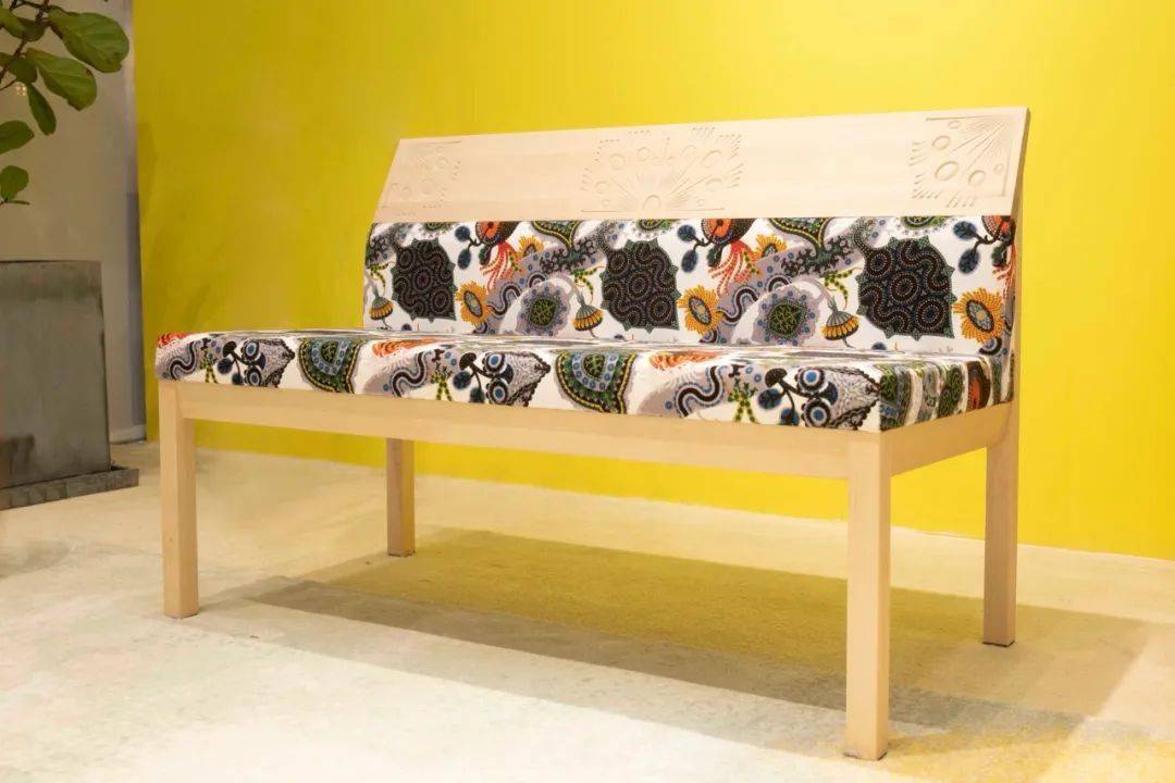 芬兰多树,80%的森林覆盖率让木质结构成为芬兰设计师的挚爱,国宝级品牌Nikari的设计灵感便是源于此。现场展示的NIKARI-ARTE SOHVA 沙发,其外形将北欧传统设计与当代设计结合,把精湛的制作工艺和可持续发展理念融入木质家具中,并采用了芬兰著名插画家Klaus Haapaniemi的经典森林动物图案,丰富又内敛地展现森林的原生之美。