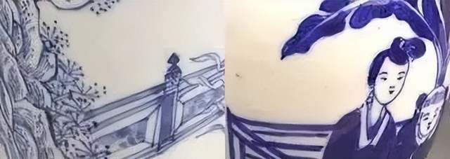 第二组图片:注意楼阁和栏杆的线条,康熙瓷刚劲有力,青花浓淡变化明显。光绪瓷线条软弱,青花层次不清晰。