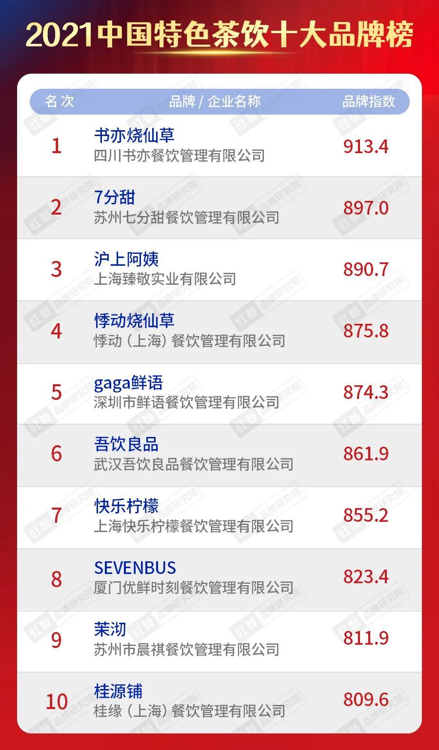 coco都可、茶颜悦色、一点点、茶百道、古茗茶饮、甜啦啦、新时沏鲜果茶则紧随其后,获得“2021中国茶饮十大品牌”殊荣。