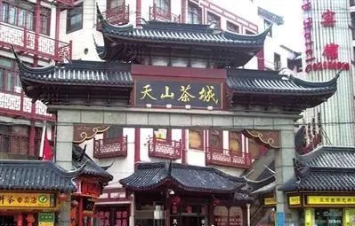 天山茶城总建筑面积2.3万平方米,拥有400个商铺,主要经营茶叶、古玩、字画、餐饮、住宿、茶艺表演、茶文化传播等。