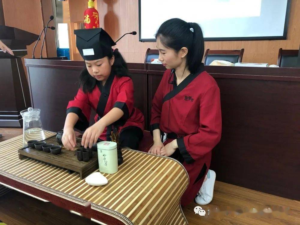 活动中,茶艺师首先介绍了茶器,展示了茶道六君子、茶盘、茶具等泡茶需要的器具,泡茶茶器是必不可少的。接着,利用实物让孩子们认识了红茶、绿茶、白茶、黑茶四类茶风味的不同和红茶、绿茶的鉴别。然后带来了精彩的茶艺表演,孩子们听得、看得非常专注。最后,孩子们分组进行泡茶、品茶、敬茶,进入了一个茶的世界,体验其中的乐趣。