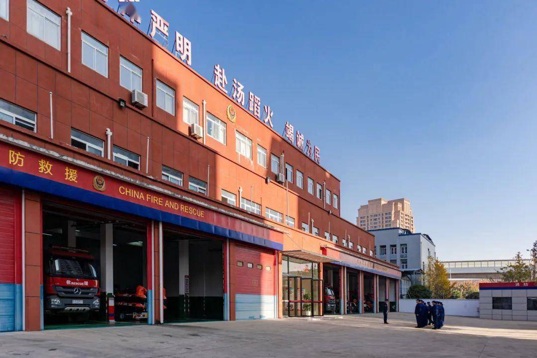 在这个商贸物流中心,一座红色阶梯式的建筑显得格外亮眼,侧面的119成功彰显这栋建筑的归属,这就是汉口北消防救援站。