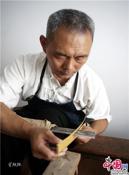 “藏”从折扇的制作工艺上来看,藏的是这扇骨制作的各个流程,包含扇骨的用料制料、匠人的手艺、竹料合青的功夫、牛筋扇轴“鼠眼”的烫法等。