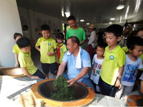 采茶后,同学们又开展制茶体验。中国制茶大师金国庆给小队员们普及了什么是有机茶园,茶叶如何分类,各类茶有什么特点等茶知识,手把手展示了茶叶从摊晾到杀青、揉捻、烘干等过程,在制茶师傅的带领下,小队员们把茶叶翻炒、揉捻,忙得不亦乐乎。回到更香茶厂,大家一起参观了更香数字化生产车间,感受数字赋能农业生产的变化,对茶叶生产的每一道工序都产生了浓厚的兴趣。