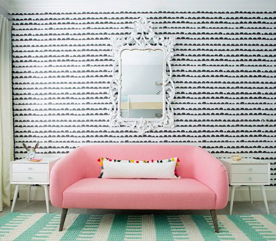 粉色的沙发,在层次感十足的黑白墙壁映衬下,夺人眼目。清新质朴,时尚简约,三两个简单设计便轻松营造出现代主义下的空间感。