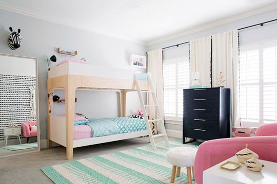 粉色系依然是儿童的最爱。从沙发到床垫,在白色为主色调的前提下,配上浅浅的绿色,穿插悦目的粉色,阳光可以透过落地窗洒进房间,显得明亮而充满朝气。