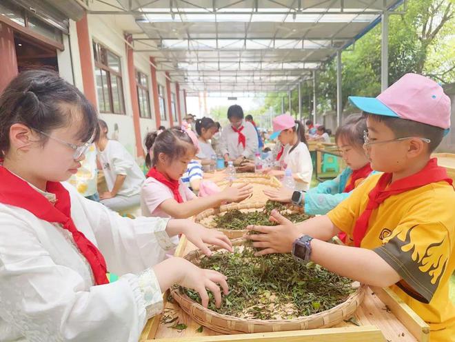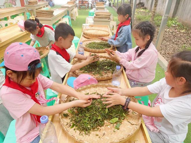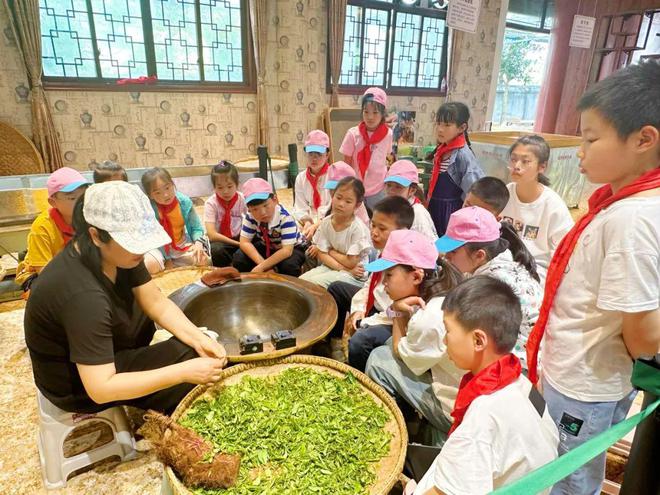 如何从嫩芽到馥郁的香茶?带着疑问和满满的兴趣,少先队员们走进荣县茶文化研学实践基地long8唯一官网。少先队员们分组开展“揉捻”体验,将茶叶置于手中,先慢揉成团,再进行分捻,在观摩、闻香及实践中,了解传统制茶工艺,学习茶业知识。